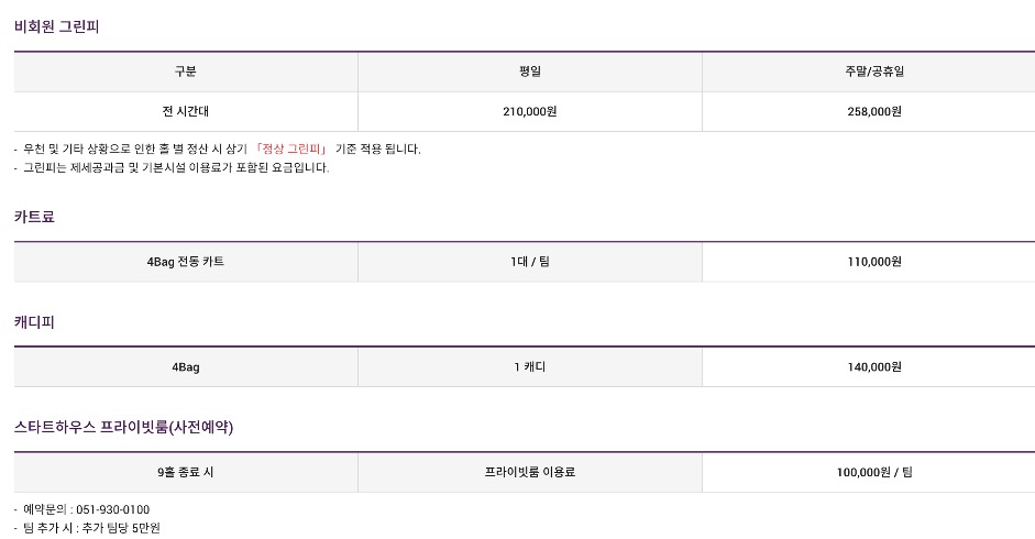•부산 지역 골프장 중에서도 가격대가 높은 편