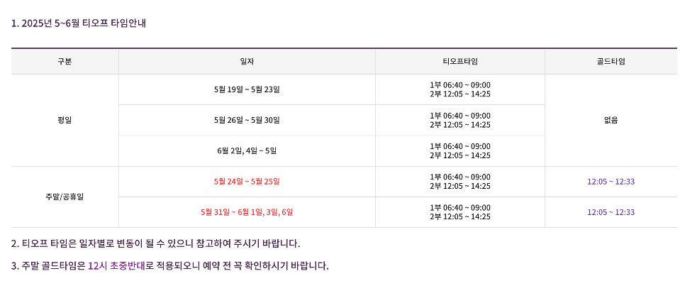 5월~6월 티오프 타임